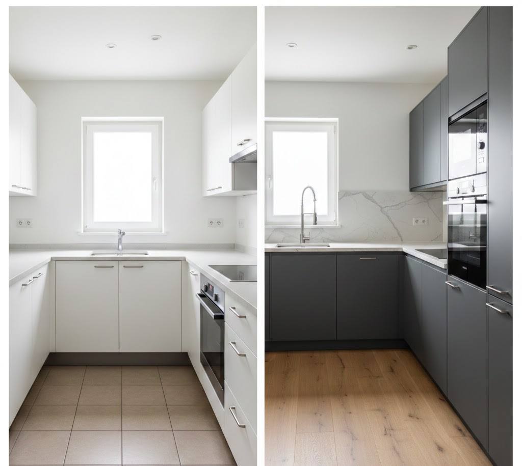 Приведу пример из практики. Клиентка в районе Мыса купила готовую кухню за 85 тысяч рублей. После доставки, сборки и доработок «напильником» итоговая сумма вышла 112 тысяч. При этом три модуля пришлось заменить — они не встали в угол. Через год она обратилась к нам за переделкой. Итоговая экономия при заказе сразу «под ключ» составила бы около 25 тысяч рублей.