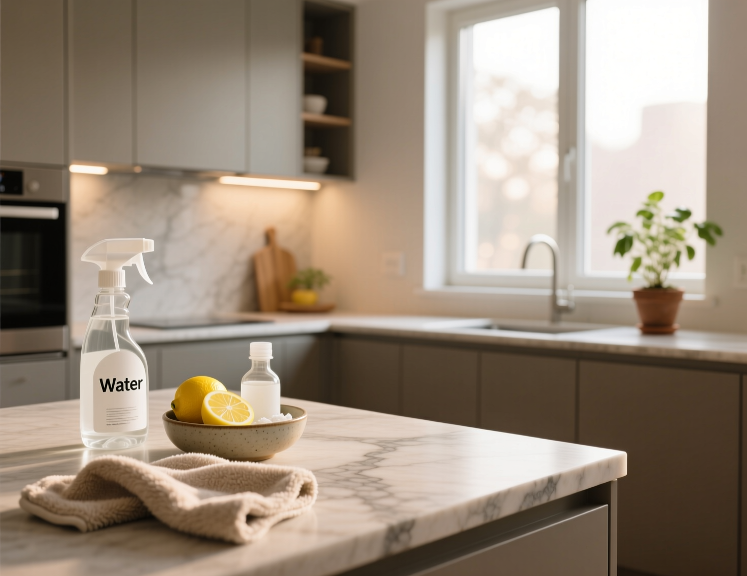 - Сразу убирайте пролитые кислоты — лимонный сок, уксус, вино. Они могут оставить пятна на светлых столешницах.
