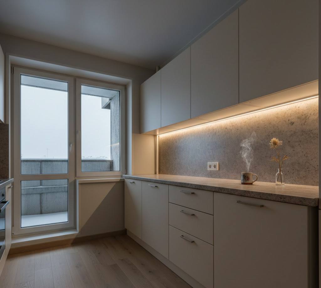 Вы живёте в Тюмени. У вас квартира на северной стороне. И каждое утро, заваривая кофе, вы замечаете одно и то же: кухня выглядит «серой», даже если фасады белые, а стены — светлые бежевые. Вы пробовали:
